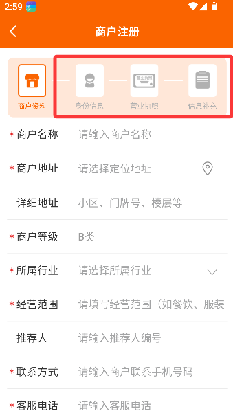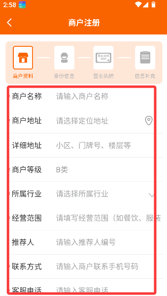 2、填写商户资料,就像开始仔细绘制一份属于自己的、独一无二的商业数据地图与拼图。