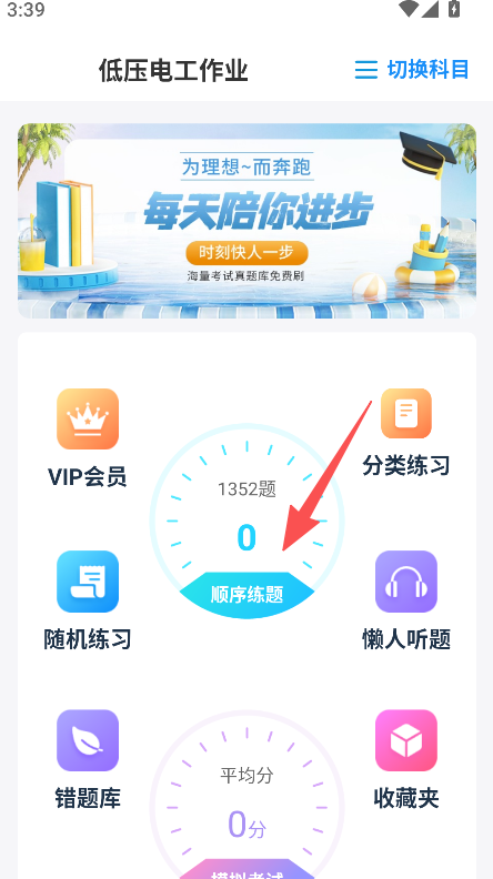 1、打开软件选择对应科目,点击顺序练习选项。