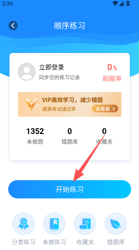 2、进入顺序练习页,点击开始练习按钮进入答题页。