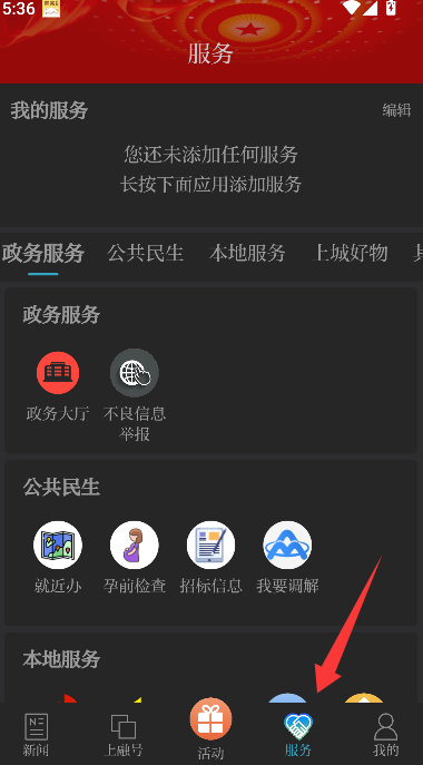 1、可以找到并点击位于导航区域的“服务”功能入口,进入政务与便民服务板块。
