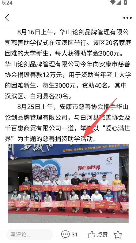 2、支持新闻查看功能,点击目标新闻进入详情页,浏览文字信息了解慈善活动详情。