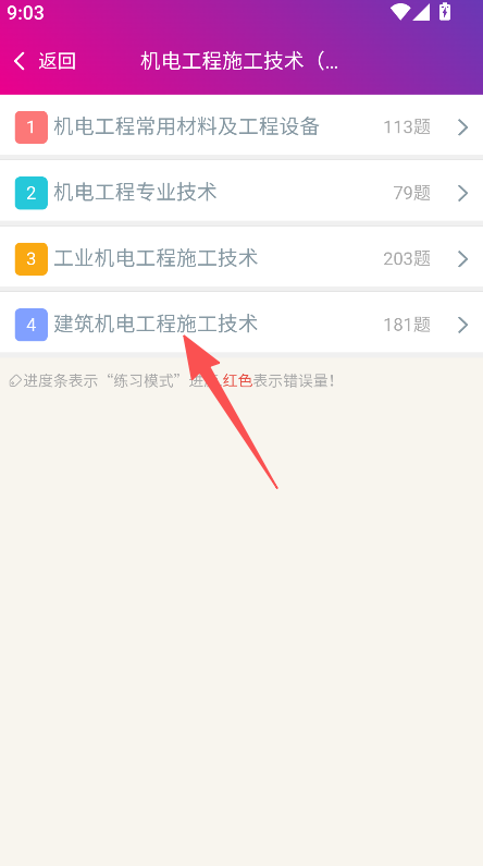2、章节练习按机电工程细分知识点分类,如建筑机电工程施工技术等,精准匹配对应知识板块的练习需求。