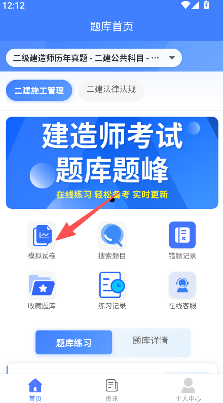 1、聚焦建造师考试备考,支持科目选择,含模拟试卷等多类练习功能,适配备考练习需求。