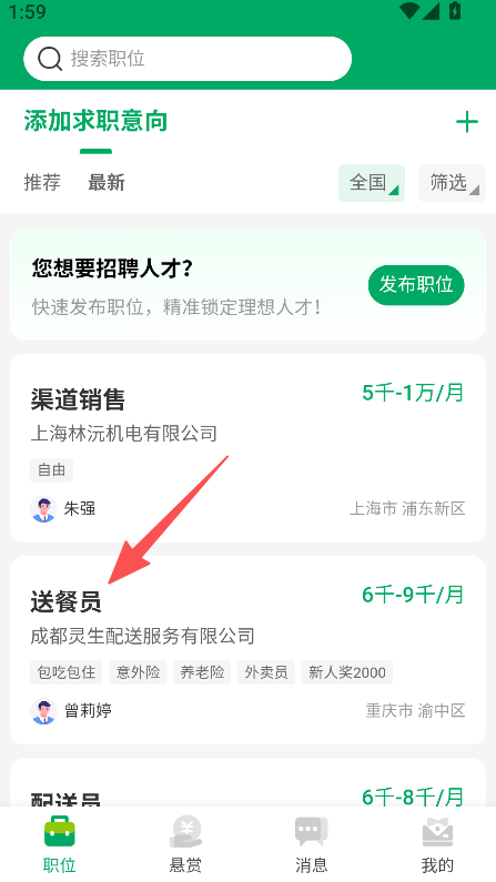 2、职位信息展示清晰,含薪资、公司等内容,增强岗位信息的参考性与透明度。