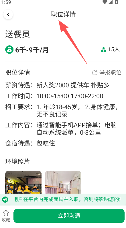 3、配备立即沟通功能,简化求职对接流程,提升求职沟通的便捷性。