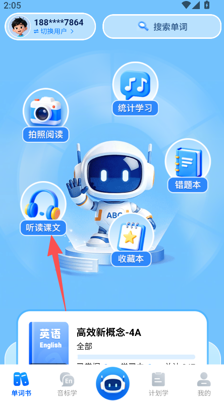 1、打开软件后,找到听读课文功能并点击。