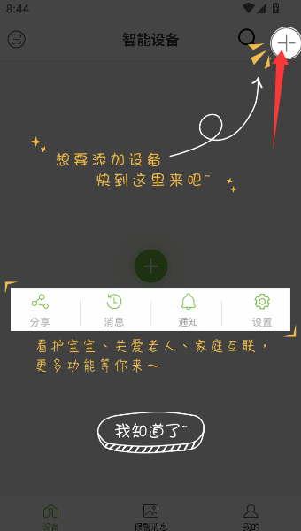 1、点加号按钮添加设备,像为物联家族邀新成员入席,扫码配对间即让探头温控等归队听唤,静待值守开拔。