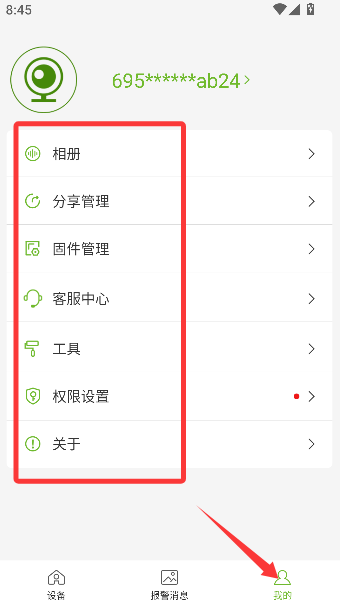 3、点我的可以找客服,可以分享管理等等,好似走进物联操控室调旋钮,参数提醒与显示项随拣随定,把监测台调成合手模样。