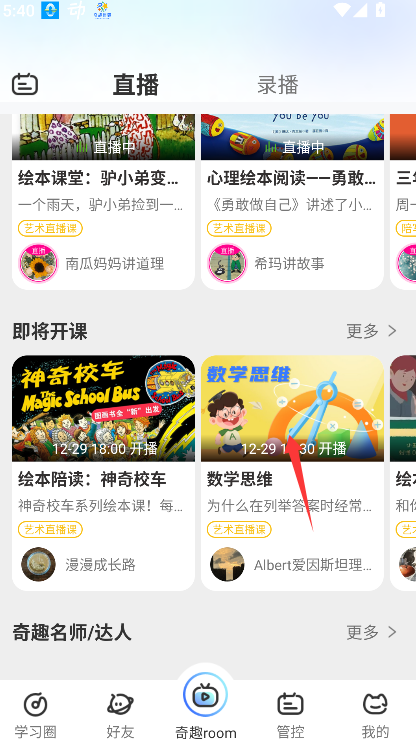 1、启动应用后进入主界面,在主页面浏览并选择感兴趣的课程或直播内容板块。