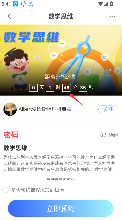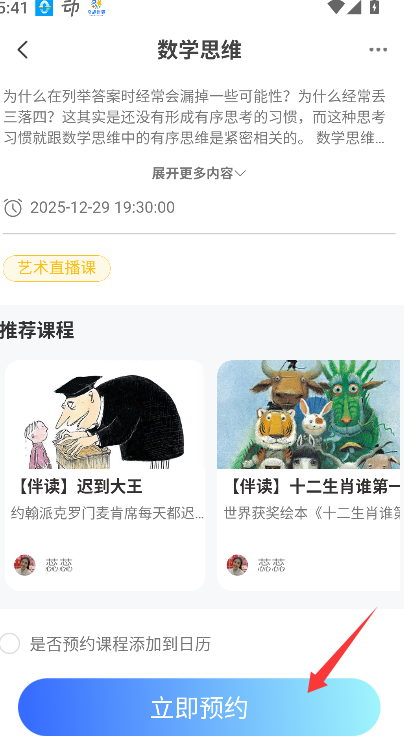 3、若对某节特定课程感兴趣,可找到该课程条目旁的“立即预约”按钮。