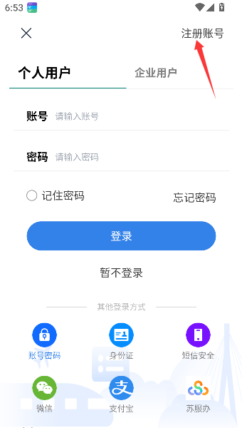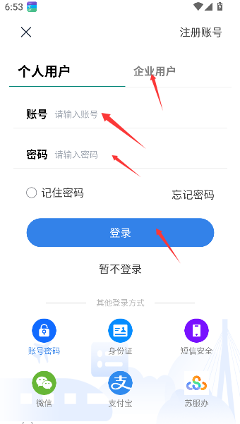 2、有账号的挑个人户或企业户登录,像选乘车身份卡,不同入口进,查讯切景更贴路情。