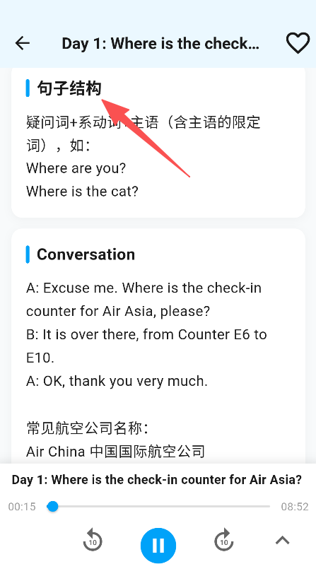 3、配备音频讲解功能,学习内容同步搭配音频,辅助听力与口语练习,提升语言学习的实用效果。