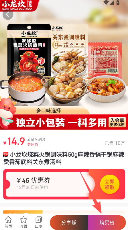 3、配备分享赚购买省等功能,领券后可直接享受优惠,覆盖优惠获取到购物的全流程。