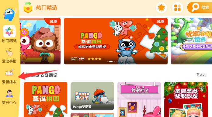 1、左侧通常会有一个明确标注为“爱看绘本”的功能入口。