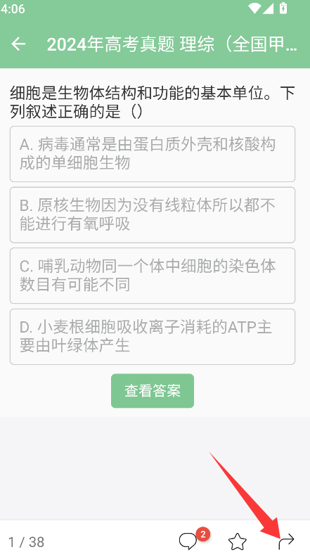 2、点击该题目后将进入包含题目内容、答案与解析的详情页面。