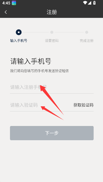 2、输入手机号码,获取验证码点击下一步,如递交入场请柬,等一串数字接通人与车的专属呼号。