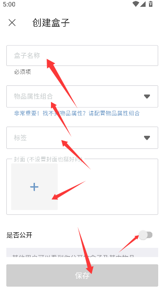 3、输入盒子名称、标签等信息,点击保存,如同为格子贴上门牌与索引,日后一望便知内藏何许名堂。