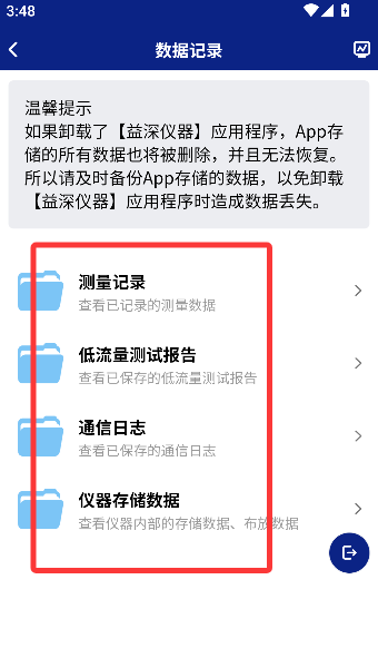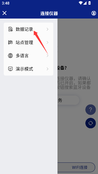 2、接着瞄准“数据记录”按钮点下去,仿佛打开仪器的日记本,准备窥探它的小秘密。