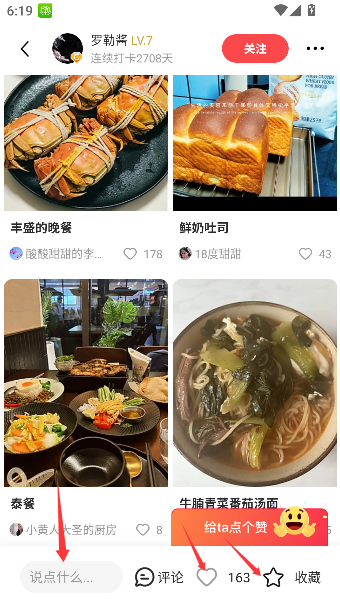 3、看完还能点赞、评论、收藏,像在美食圈发弹幕,把喜爱牢牢存起来。