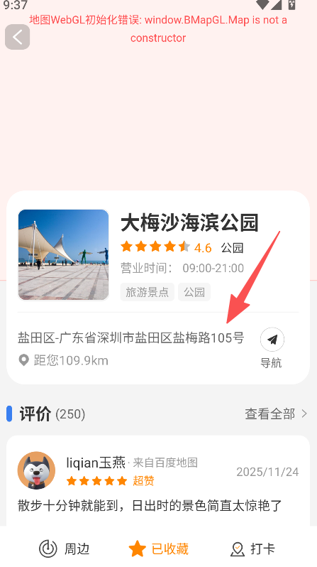 3、支持导航功能,在地点详情页点击对应按钮,可获取前往该地点的路线指引。