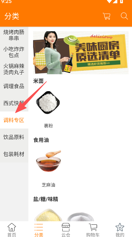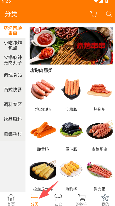 2、在分类页面左侧栏,选择对应食品品类查看相关商品。