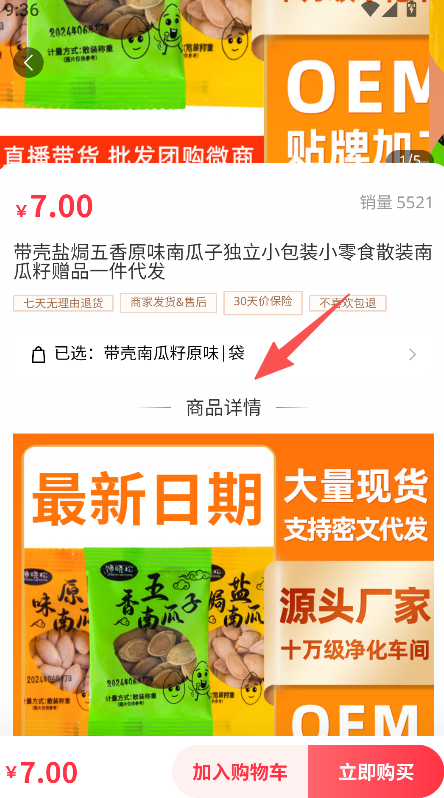 2、在商品列表页中,选择目标商品点击进入其详情页面。
