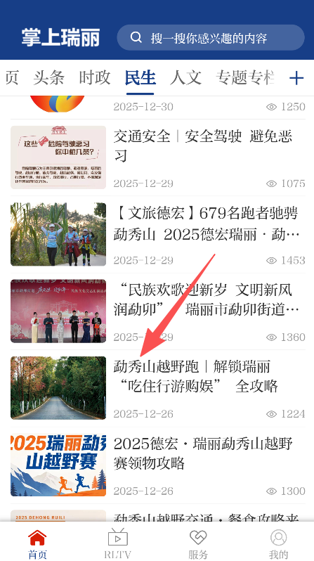 2、支持点击对应资讯板块,进入板块页面查看该类别下的瑞丽本地新闻条目列表。