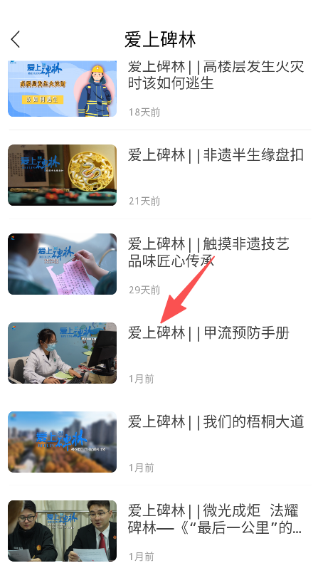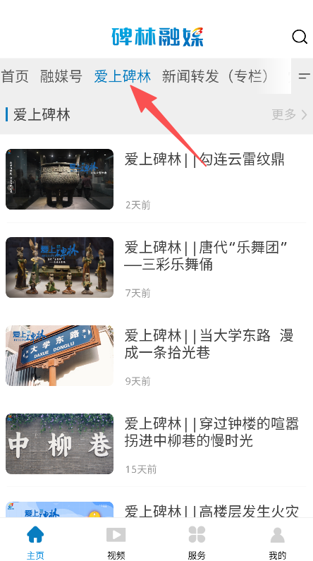 2、支持点击爱上碑林板块,进入对应页面查看该板块下的碑林本地新闻条目列表。