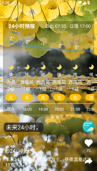 2、往下滚动,它变身预言家,细说未来24小时天气走向。
