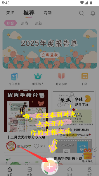 1、点下加号按钮,像推开一扇通往手帐世界的秘密门。