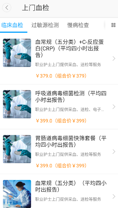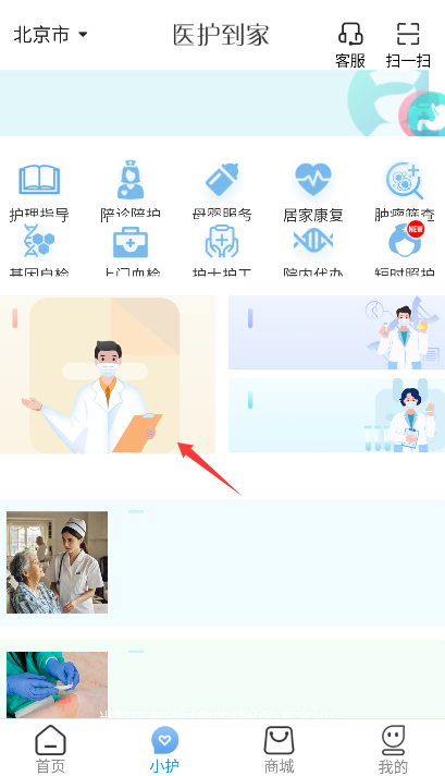 1、浏览并点击打针换药、慢病管理等护理服务板块,进入具体项目列表。