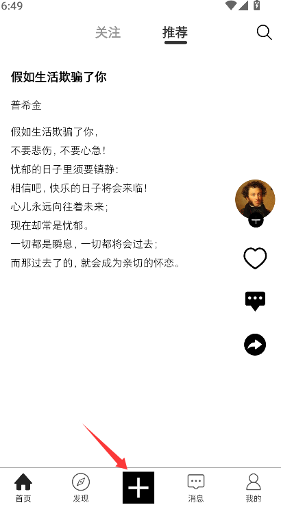 1、找到通常位于底部导航栏或右上角的“+”号图标,点击该图标以进入内容创建或作品上传的起始界面。
