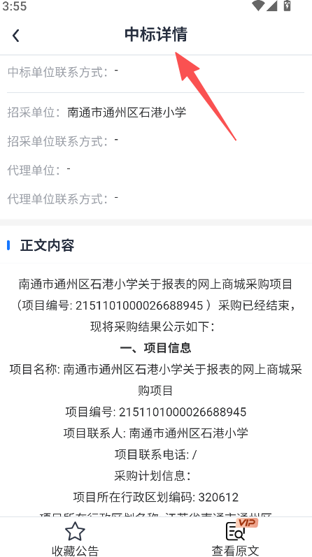 3、点击目标项目,进入页面查看其详细的标讯内容。