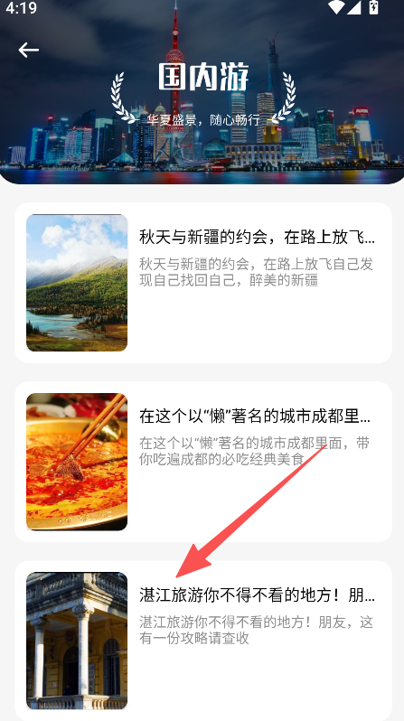 2、进入对应板块,浏览推荐的旅行攻略内容。