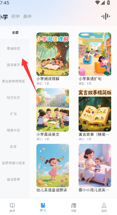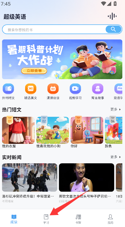 1、在底部导航栏中找到并点击明确标识为“学习”的入口,页面将切换至按主题或难度分类的听力课程列表页。