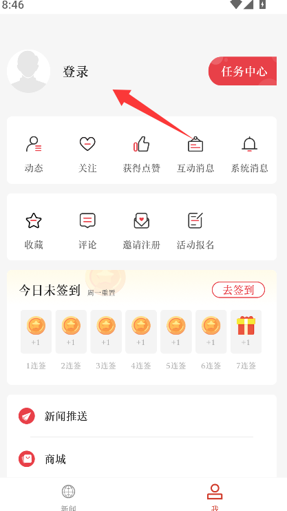2、界面会清晰显示“登录”或“去登录”按钮,点击此按钮以跳转至账号登录界面。