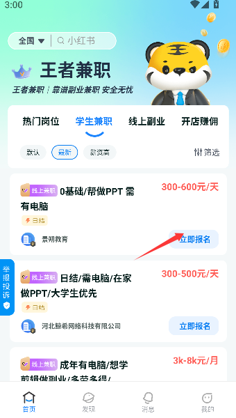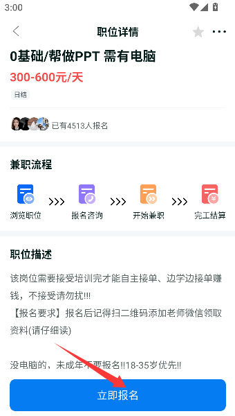 3、最后点“立即报名”,像举手抢名额,把兼职机会稳稳攥进自己手里。
