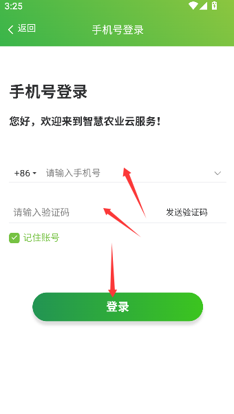 3、输入手机号与验证码并登录,像领到田间通行证,正式进入云上农场。