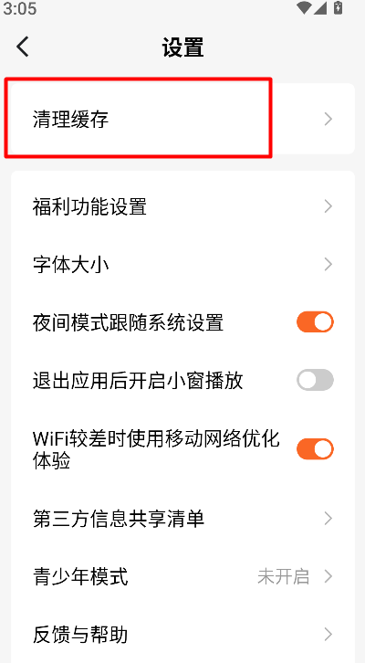 3、在设置页面中选择“清除缓存”功能,可查看当前缓存占用情况,用于释放存储空间、提升运行效率。
