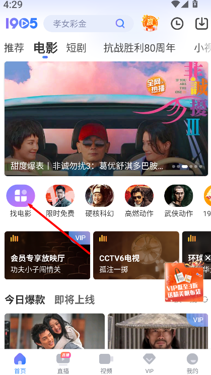 2、在页面中找到“找电影”选项,打开后进入影片筛选界面。