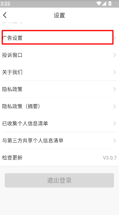3、在设置界面中点击“广告设置”,将开关按钮开启,即可激活广告推送功能,获取更多个性化推荐内容。