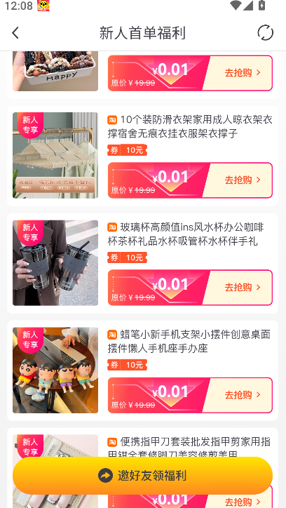 2、在“新人福利”专区中,可浏览首单福利商品,挑选喜欢的商品享受优惠购买。