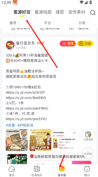 3、进入“粉圈”板块,查看其他用户分享的蜜源好货推荐,获取更多购物灵感与省钱资讯。