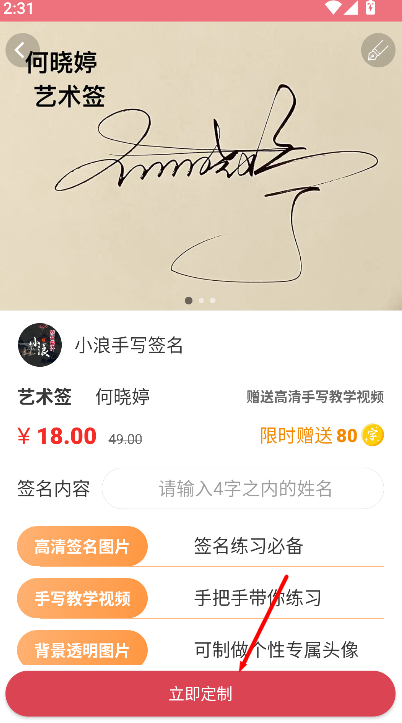 3、确认选择后点击“立即定制”,系统将自动生成专属签名样式,完成个性签名制作。