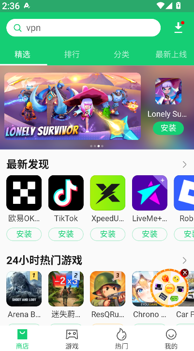 1、进入app商店首页后,可浏览最新更新的应用内容,并查看24小时内热度最高的游戏,方便了解当前流行趋势。