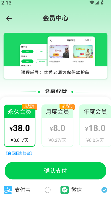 3、如需解锁更多课程资源与扩展学习内容,可在会员页面选择开通方式,开通后可享受更多学习服务与功能内容。