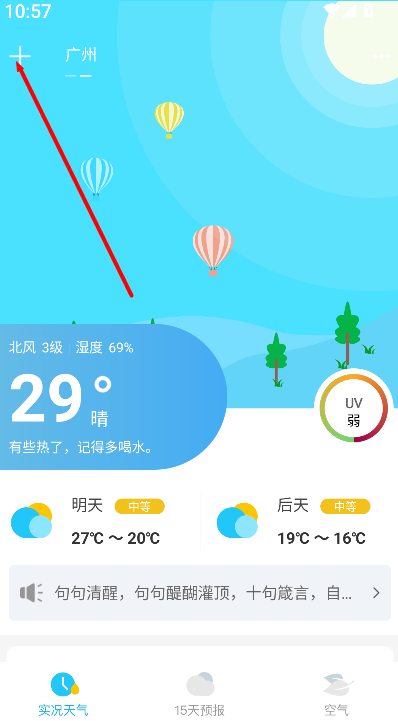 1、打开《新氧天气》后,点击右上角的“+”号即可添加多个城市,方便同时查看不同地区的实时天气状况与气温变化。