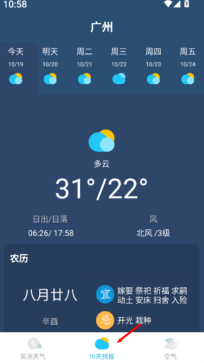 2、进入城市详情页面后,可查看该城市未来15天的天气预报,包括温度走势、降雨概率、风力等级等详细数据,便于出行与生活规划。