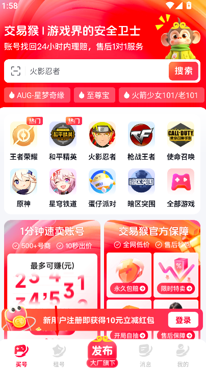 《交易猴》是一款专注于数字资产与虚拟商品交易的工具型软件,支持多平台账号商品买卖、行情查询及订单管理。平台聚合多类虚拟商品资源,设有安全交易流程与担保机制,保障交易顺畅与信息透明。通过实时数据分析与便捷操作界面,让虚拟物品流通更高效,满足多领域交易需求。